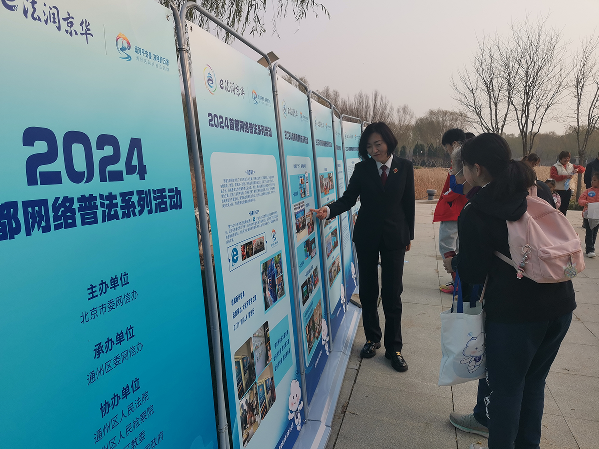 猜謎語(yǔ)、繪圖畫(huà)、拼拼圖、玩游戲……11月9日下午,北京市通州區(qū)臺(tái)湖公園內(nèi)人聲鼎沸、熱鬧非凡,由北京市委網(wǎng)信辦主辦,通州區(qū)委網(wǎng)信辦承辦,通州區(qū)人民法院、通州區(qū)人民檢察院、通州區(qū)教委以及臺(tái)湖鎮(zhèn)人民政府協(xié)辦的“e法潤(rùn)京華·運(yùn)河平安獸 護(hù)網(wǎng)凈萬(wàn)家”網(wǎng)絡(luò)普法游園會(huì)吸引了眾多游人的關(guān)注并積極參與。