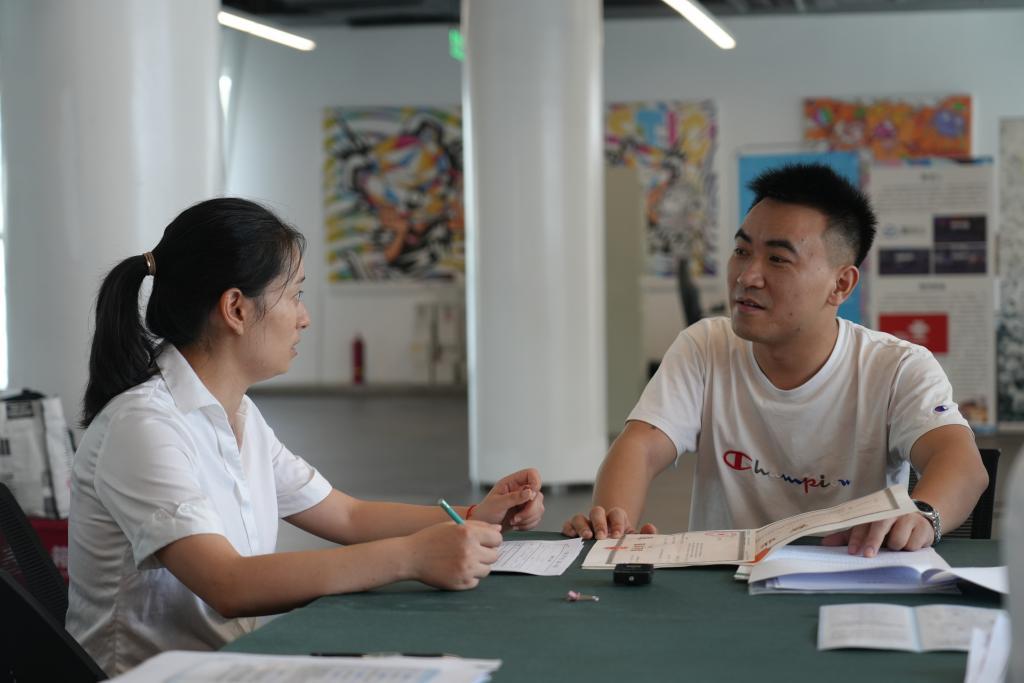 成都市成華區(qū)行政審批局在項目現(xiàn)場設(shè)立“流動審批服務(wù)點”,為商戶辦理行政審批手續(xù)。(詹妮 攝)