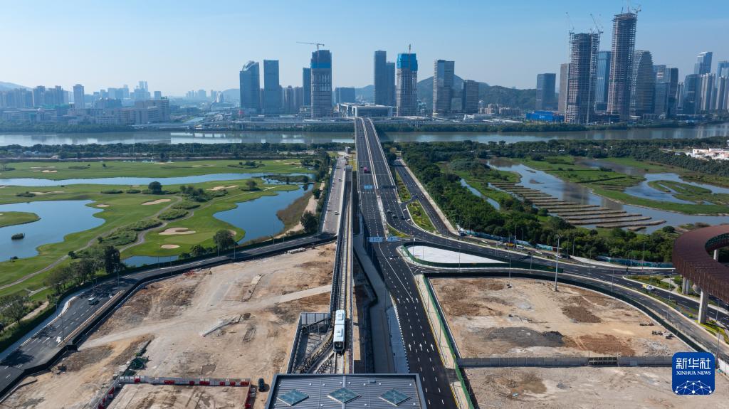 ??12月2日,澳門輕軌從蓮花站開往橫琴站(無(wú)人機(jī)照片)。新華社發(fā)(張金加攝)