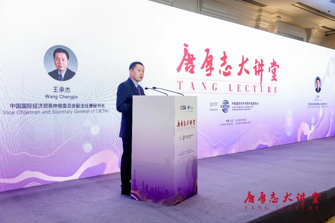 王承杰秘書長(zhǎng)在開(kāi)場(chǎng)致辭中表示,唐厚志大講堂是為了紀(jì)念我國(guó)仲裁事業(yè)的重要奠基人和開(kāi)拓者唐厚志先生而設(shè)立。近年來(lái),黨和國(guó)家高度重視并積極推動(dòng)仲裁事業(yè)發(fā)展。今年7月黨的二十屆三中全會(huì)通過(guò)的《中共中央關(guān)于進(jìn)一步全面深化改革、推進(jìn)中國(guó)式現(xiàn)代化的決定》,更是高度重視、四次提及仲裁,并對(duì)健全國(guó)際商事仲裁制度、培育國(guó)際一流仲裁機(jī)構(gòu)作出專門部署、提出明確要求。唐老多年來(lái)倡導(dǎo)、推動(dòng)我國(guó)仲裁事業(yè)發(fā)展的不懈努力和重大貢獻(xiàn)在新時(shí)代久久回響。