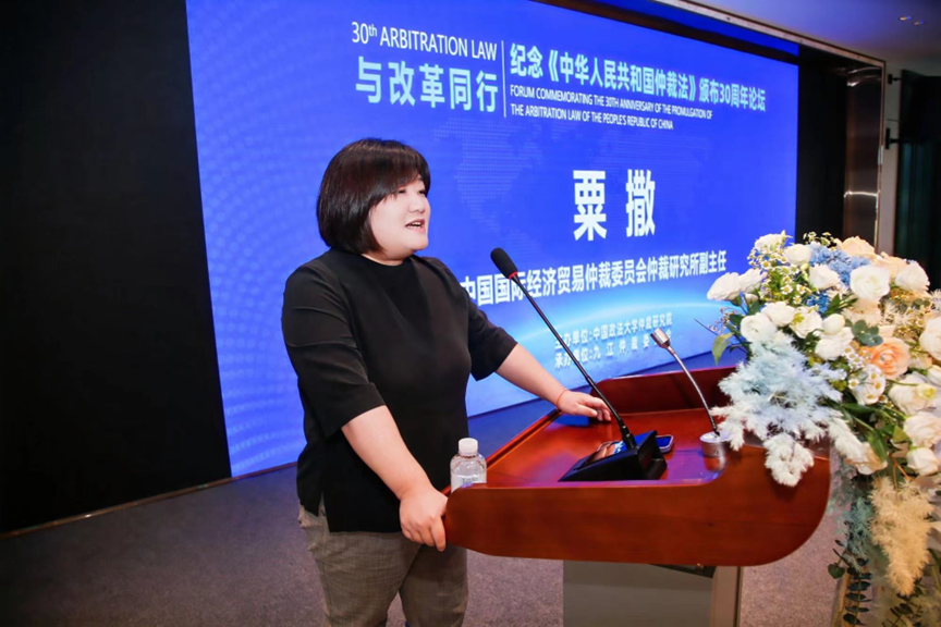 圖為中國國際經(jīng)濟(jì)貿(mào)易仲裁委員會研究所副主任粟撒發(fā)言