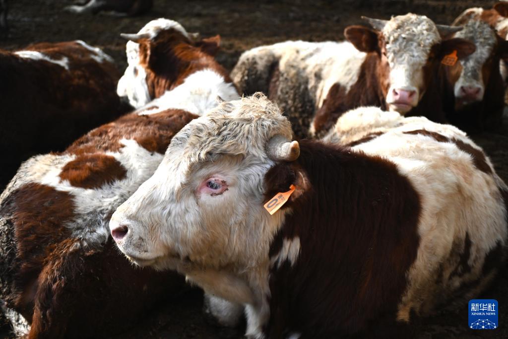 這是1月6日在寧夏固原市涇源縣一家養(yǎng)牛場拍攝的黃牛。