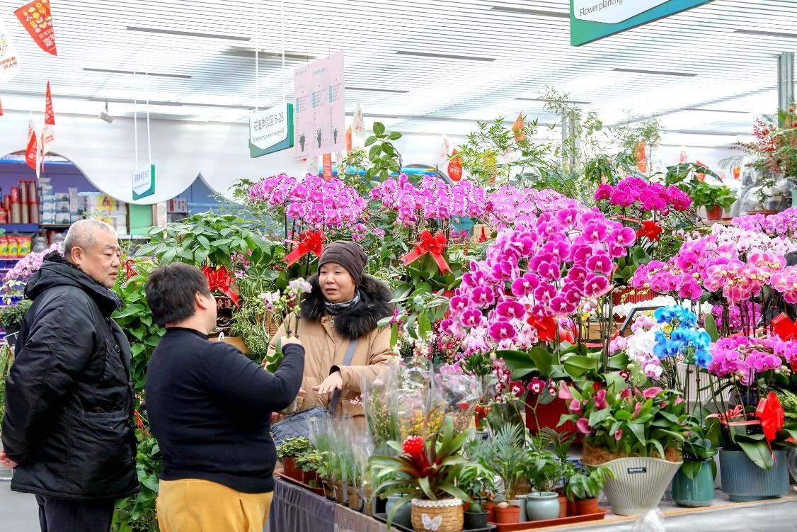 市民選購(gòu)年宵花(北京市園林綠化局供圖)