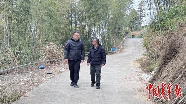 1月8日,雙峰村駐村第一書記劉祥(左)和村支部書記陳家凱(右)去看望低收入農(nóng)戶。中青報(bào)·中青網(wǎng)見習(xí)記者 趙麗梅/攝