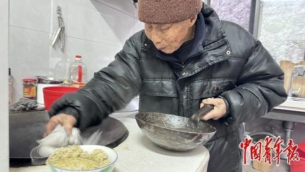 1月8日傍晚,雙峰村92歲的陳先生正在為妻子和兒子做晚飯。中青報(bào)·中青網(wǎng)見習(xí)記者 趙麗梅/攝