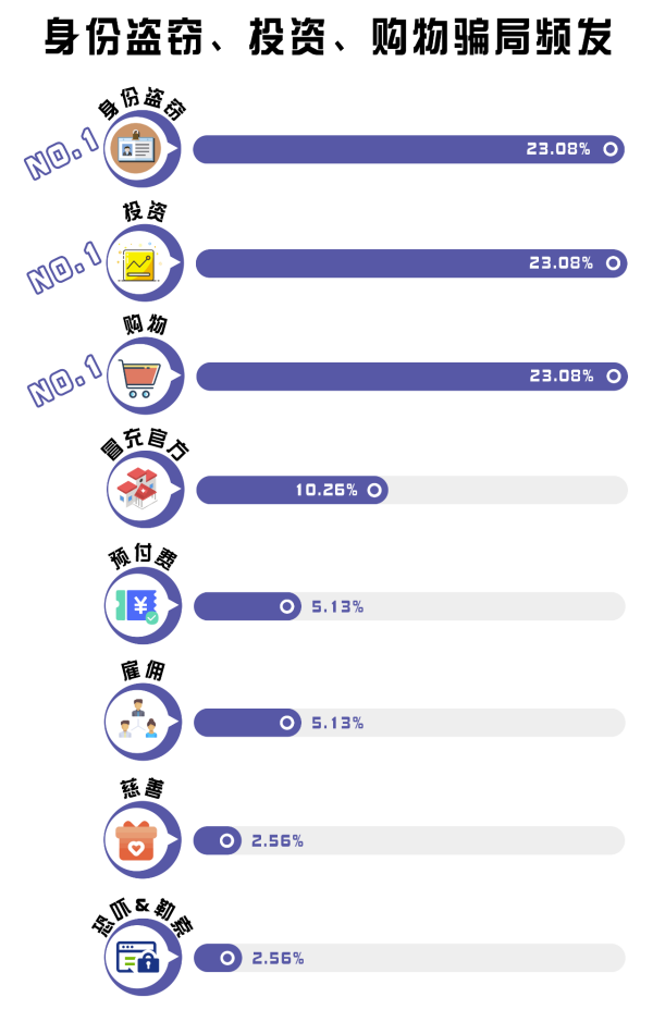 2、詐騙類型繁多,身份盜竊、投資詐騙、購物詐騙成“重災區(qū)”