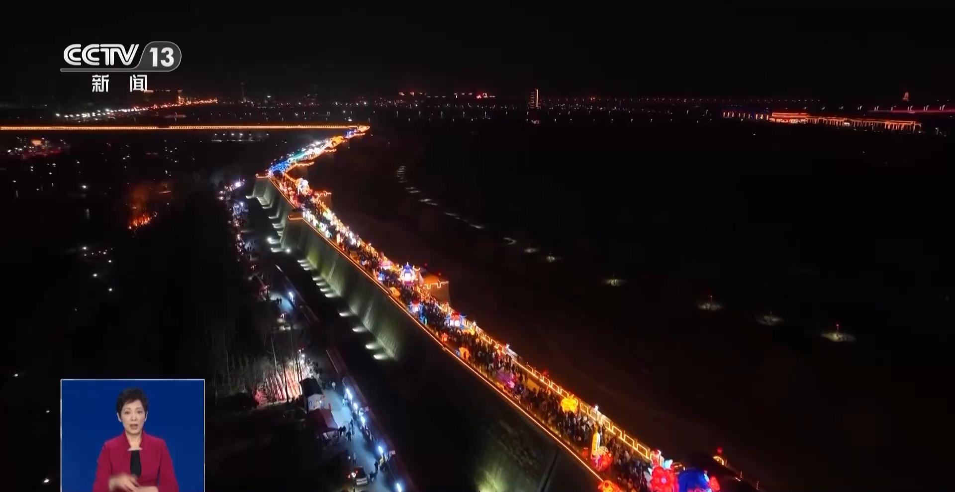 借助科技,正定古城為游客提供了新場(chǎng)景新表達(dá)。20多米長(zhǎng)的龍鳳巨型燈組與城墻上的千盞花燈一同點(diǎn)亮,用流光溢彩、璀璨奪目的花燈作裝飾,把古城裝點(diǎn)得宛若天上的街市,震撼了八方游客。