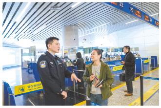 “稍等稍等,警官過年好,我找一下護照?!彬炞C臺前,從美國來的旅客杜先生拎著大包小包的行李,手忙腳亂地翻找著。