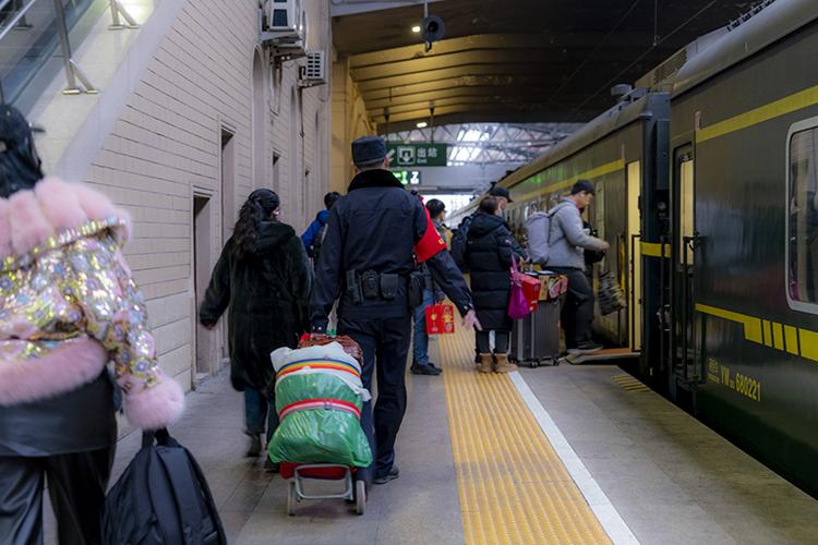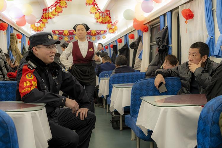 沃荻值乘的K27次列車從北京發(fā)往遼寧丹東,單次往返耗時兩天,他需要連續(xù)值乘兩個來回,共計4天。春運(yùn)期間,旅客數(shù)量激增,沃荻的工作量也隨之加大。“春運(yùn)期間旅客特別多,比平時要操心許多,我們的職責(zé)就是確保每一位旅客安全返鄉(xiāng)”。
