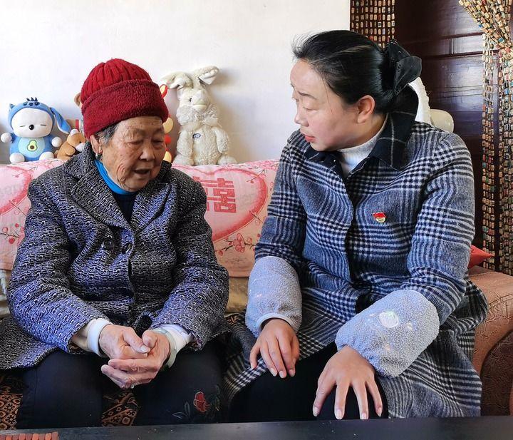 楊汝鈺(右)在社區(qū)一位老人家中進(jìn)行入戶慰問(wèn)。新華社發(fā)(李建華攝)
