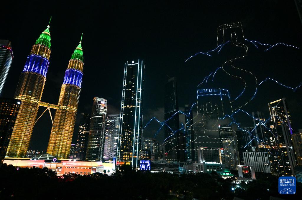 1月25日,在馬來西亞吉隆坡舉行的2025年“歡樂春節(jié)”全球啟動(dòng)儀式前,無人機(jī)展示長(zhǎng)城圖案。