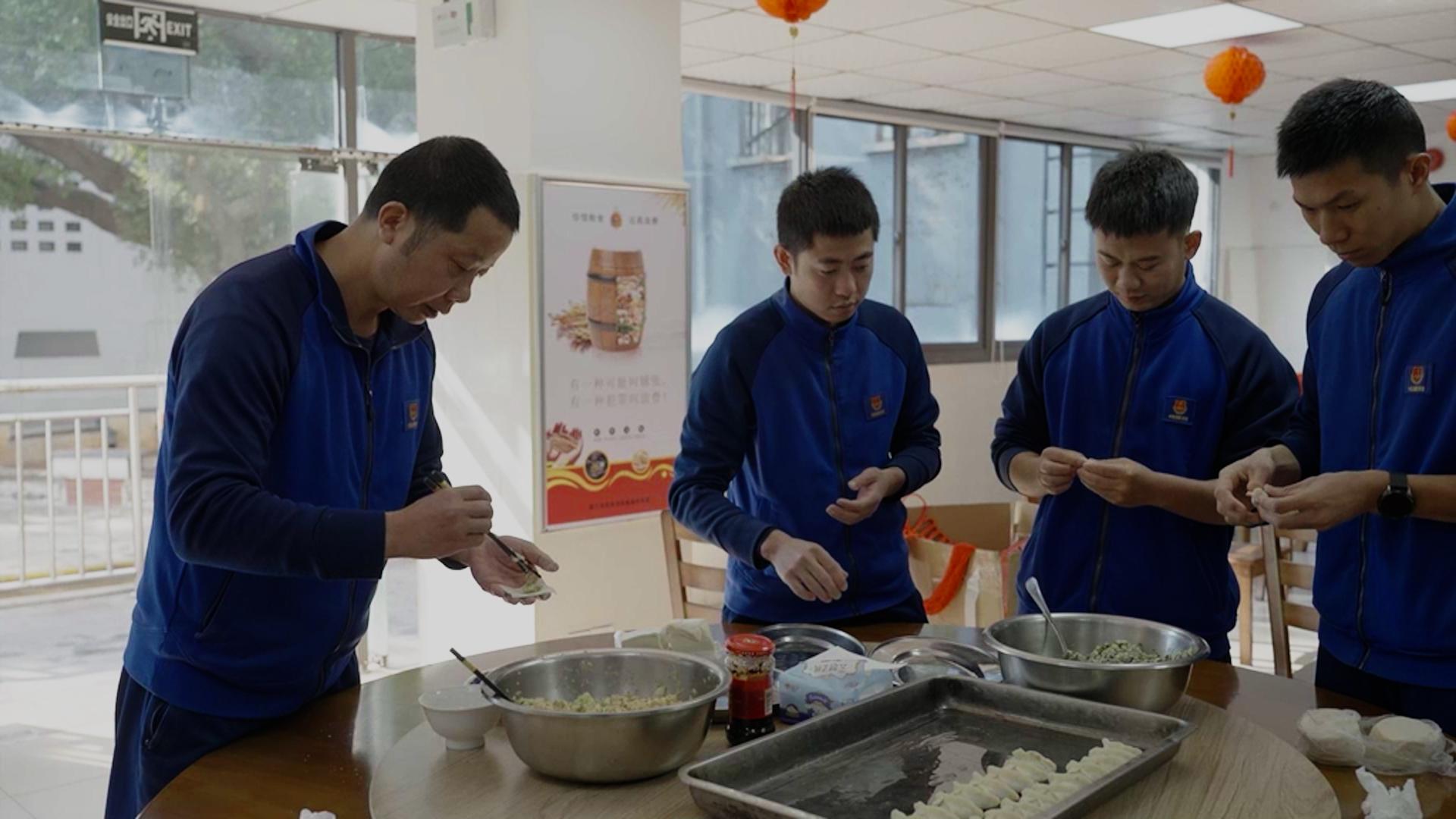 春節(jié)期間,福建省廈門市同安消防救援大隊(duì)大同消防站消防員們利用休息時(shí)間自己動(dòng)手包餃子。通訊員 余藝娟 攝