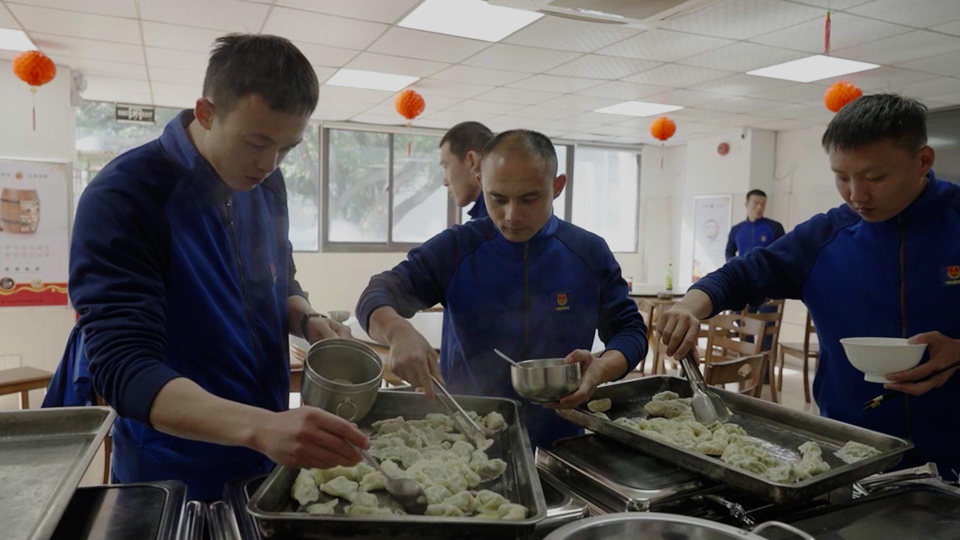 而在隊(duì)里過(guò)年,同樣也需要陳旭操持。休息時(shí),他安排大家一起包餃子。大家圍著一圈等著餃子出爐,剛一出鍋,就有人迫不及待地先要“嘗嘗味”。有的消防員還秀出自己的廚藝,整個(gè)食堂里歡聲笑語(yǔ)不斷,為緊張的備戰(zhàn)生活增添了幾分輕松和歡樂(lè)。