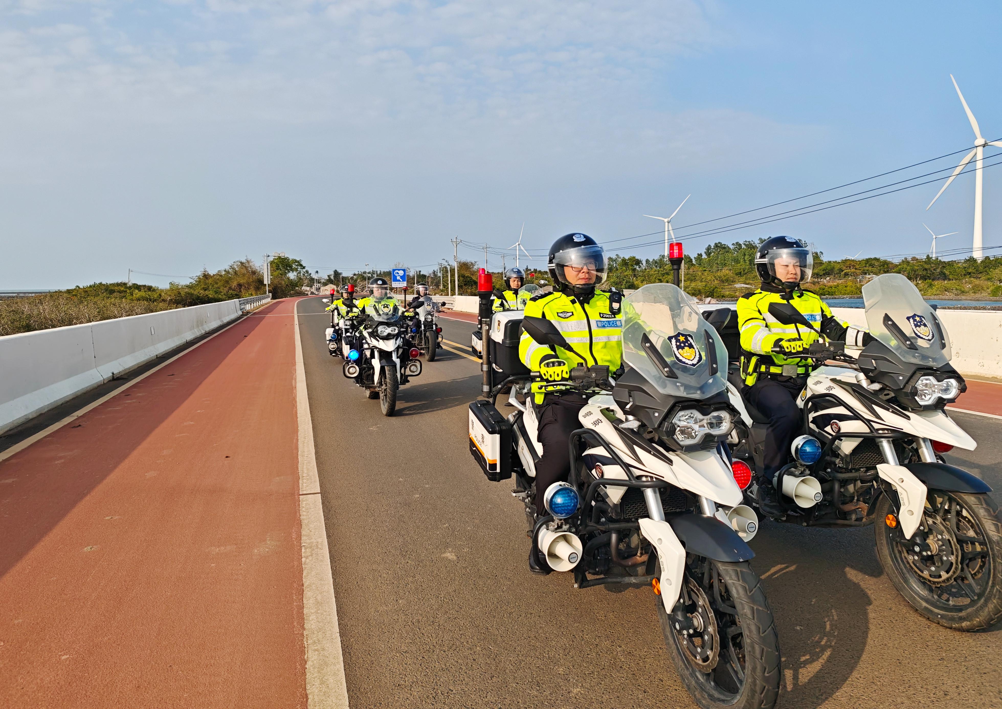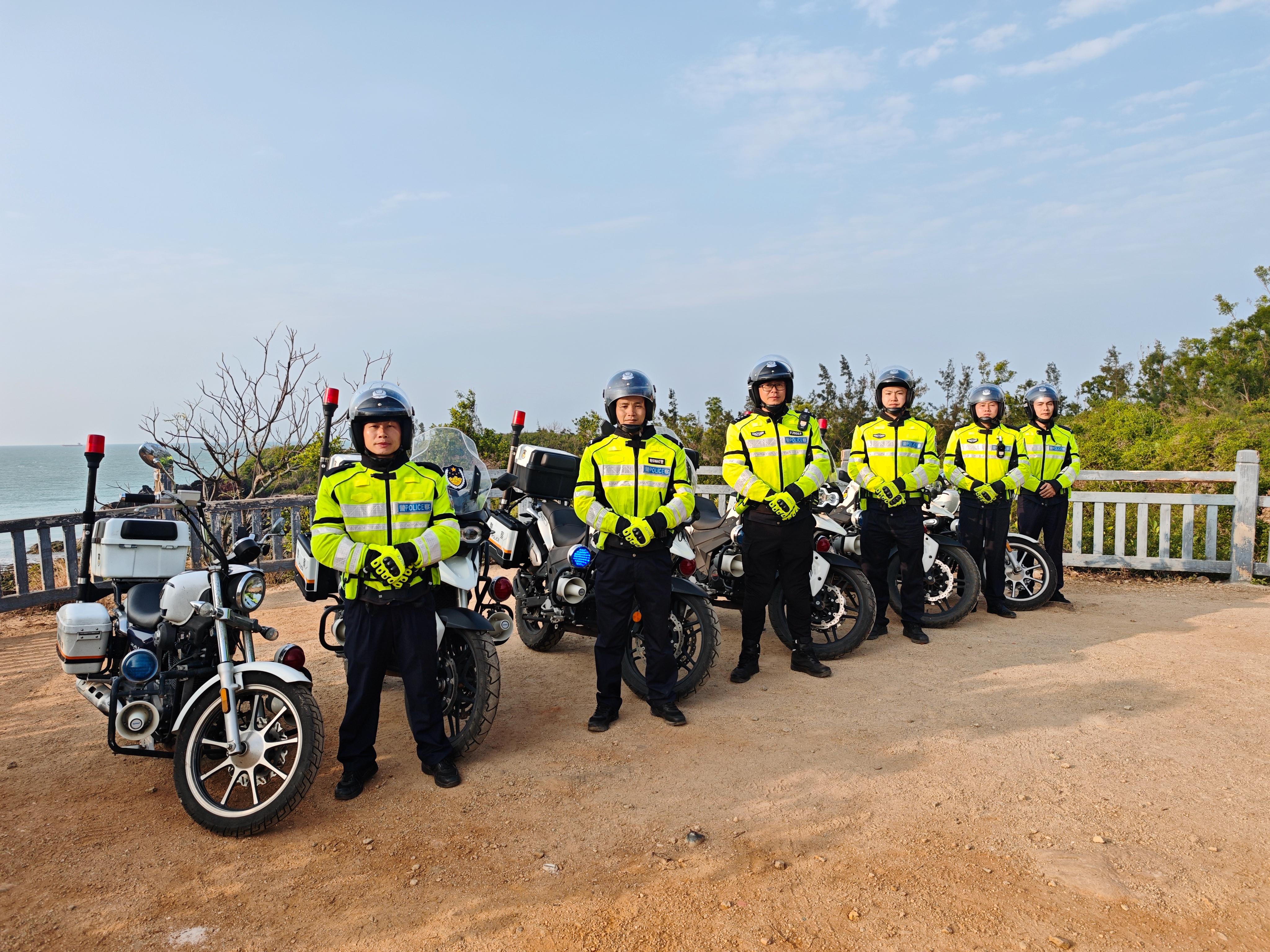 省公安廳反走私和管理總隊(duì)第七支隊(duì)警用摩托車巡邏小分隊(duì)在環(huán)島旅游公路峨蔓路段有序開展巡邏