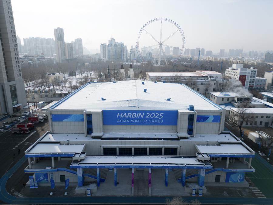 這是1月27日拍攝的黑龍江省冰上訓(xùn)練中心綜合館(短道速滑、花樣滑冰比賽場(chǎng)館)(無人機(jī)照片)。新華社記者 王建威 攝