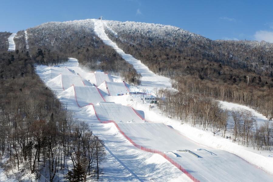 這是1月16日拍攝的位于亞布力滑雪場(chǎng)內(nèi)的第九屆亞冬會(huì)坡面障礙技巧場(chǎng)地和大跳臺(tái)場(chǎng)地(無人機(jī)照片)。新華社記者 謝劍飛 攝