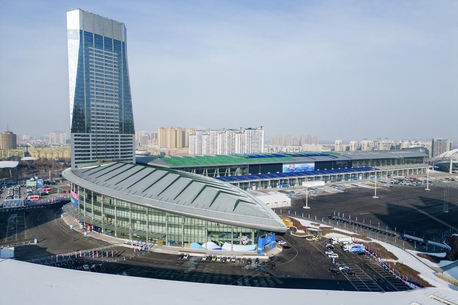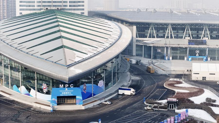 這是1月21日拍攝的哈爾濱2025年第九屆亞冬會(huì)主新聞中心(無人機(jī)照片)。新華社記者 王松 攝
