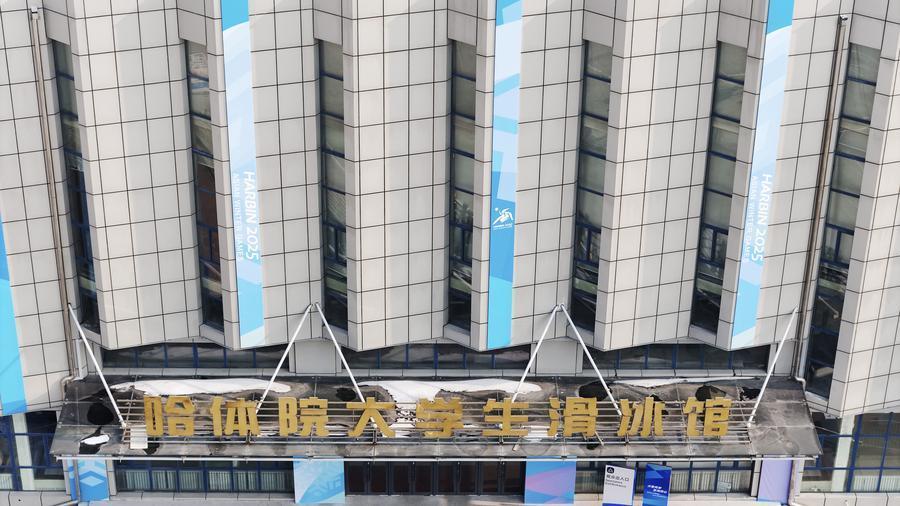 這是1月27日拍攝的哈爾濱體育學(xué)院大學(xué)生滑冰館(女子冰球比賽場(chǎng)館)(無人機(jī)照片)。新華社記者 張濤 攝