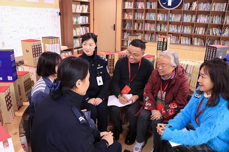 圖為小梅(左三)接受本報(bào)記者采訪。