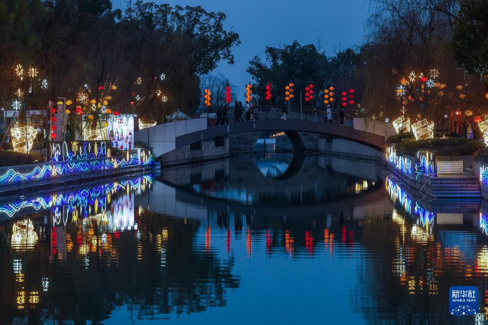 臨近元宵節(jié),浙江省嘉興市南湖區(qū)的街道社區(qū)、商業(yè)區(qū)塊、城市公園被各色花燈點亮,營造出濃濃的節(jié)日氣氛。