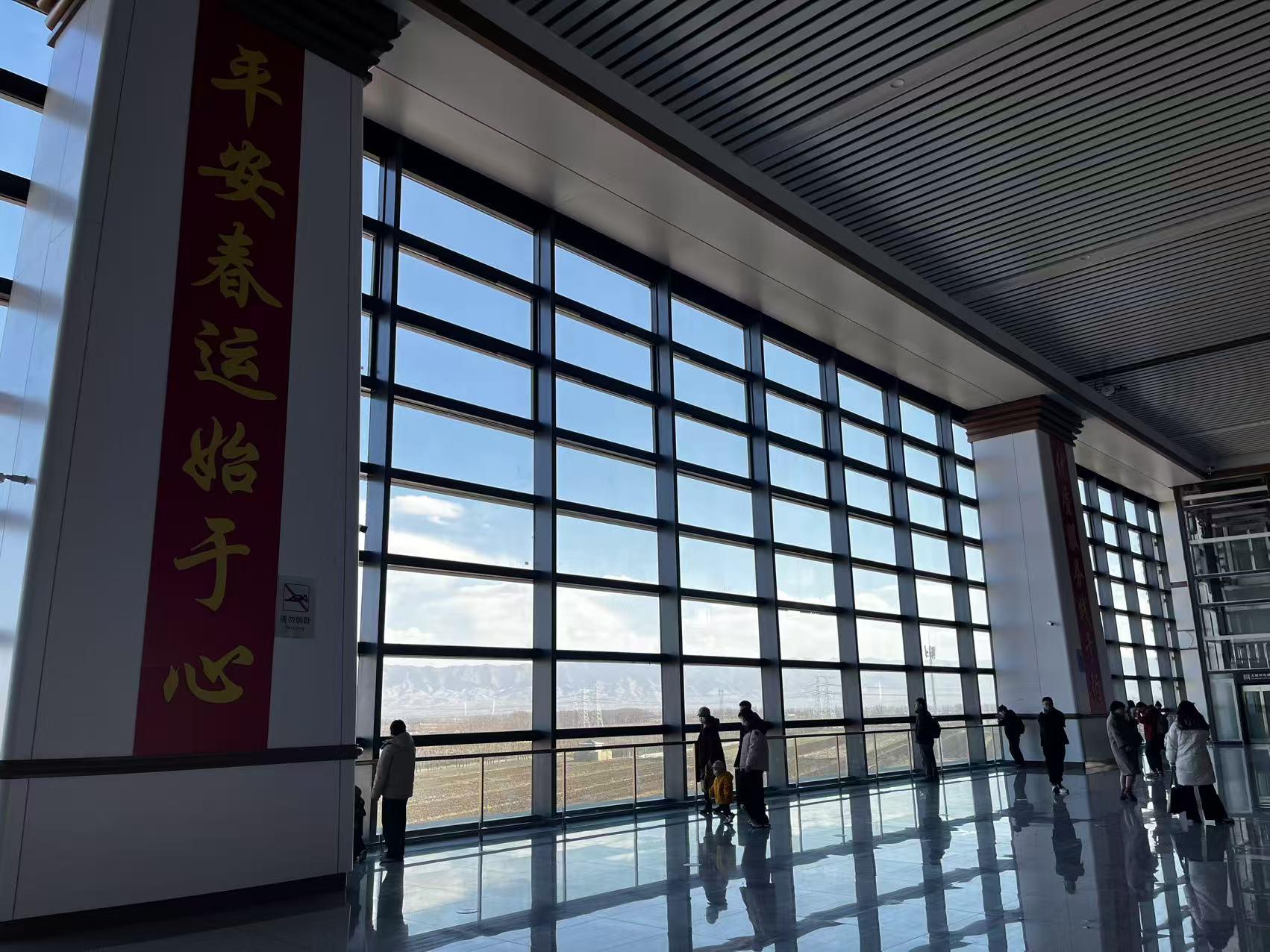 “優(yōu)質(zhì)服務(wù)踐于行,平安春運(yùn)始于心”的巨大標(biāo)語(yǔ)矗立在候車大廳的大窗兩側(cè),這既是朔州東站對(duì)每一位乘客的承諾,更是保障春運(yùn)安全決心的體現(xiàn)。