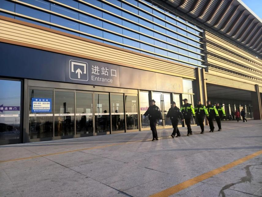 在站臺(tái)外,守護(hù)同樣不停。人頭攢動(dòng)的朔州東車站,執(zhí)勤民警在寒風(fēng)中巡邏,確保站內(nèi)外的安全。