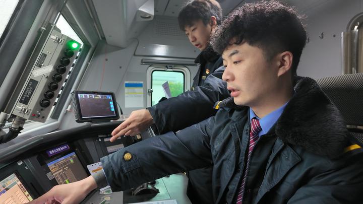 圖為董航與同事在機車上作業(yè)。(受訪者供圖)