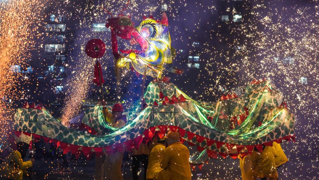 2月11日晚,人們在臺江縣參加“舞龍噓花”活動。新華社記者 陶亮 攝