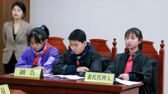模擬法庭環(huán)節(jié),在“小法官”的主持下,“原告”“被告”雙方圍繞案件事實(shí)及爭(zhēng)議焦點(diǎn)開展了舉證質(zhì)證、相互發(fā)問、法庭辯論等,整個(gè)庭審過程莊重嚴(yán)肅、秩序井然,旁聽人員神情專注、認(rèn)真聆聽,小朋友們“沉浸式”參與了庭審全過程。在互動(dòng)環(huán)節(jié)中,孩子們積極發(fā)言,踴躍分享了自己的感悟與收獲,還提出許多與日常生活緊密相關(guān)的法律問題。