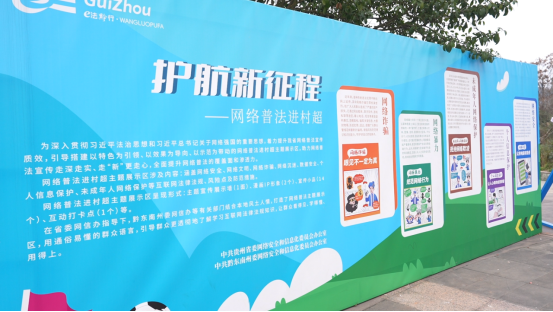“村超普法點(diǎn)”是一個(gè)集普法宣傳、互動(dòng)體驗(yàn)、教育展覽、法律服務(wù)等多功能于一體的綜合性普法平臺(tái)。在“村超”比賽現(xiàn)場及周邊區(qū)域,設(shè)置了展示網(wǎng)絡(luò)安全、網(wǎng)絡(luò)詐騙等內(nèi)容的展板,并組織普法志愿者向觀眾發(fā)放普法宣傳資料,講解法律知識(shí)。