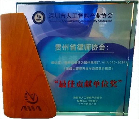 貴州省律師協(xié)會大數(shù)據(jù)和信息化專業(yè)委員會主任李緒誠律師作為主要起草人,參與國內(nèi)首個法律大模型團(tuán)體標(biāo)準(zhǔn)T/AIIA 010-2024《法律大模型開發(fā)與應(yīng)用服務(wù)規(guī)范》編制。該標(biāo)準(zhǔn)于2024年8月發(fā)布,推動法律人工智能服務(wù)規(guī)范化、高效化。貴州省律師協(xié)會獲評“最佳貢獻(xiàn)單位獎”,彰顯其在法律科技領(lǐng)域的引領(lǐng)力。