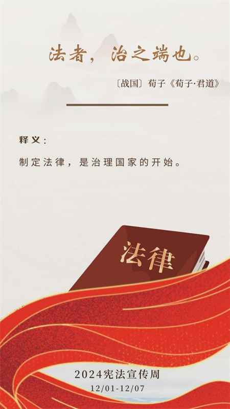 在2024年國(guó)家憲法日,光明網(wǎng)圍繞“尊憲崇法”主題,開設(shè)網(wǎng)絡(luò)專題,推出動(dòng)漫、海報(bào)普法產(chǎn)品,以多形態(tài)網(wǎng)絡(luò)宣傳形式和手段,推出特色普法宣傳作品。作品《尊憲崇法|“憲”在24小時(shí)》以MG動(dòng)畫的形式,將一家人的生活劃分為幾個(gè)場(chǎng)景,以展示憲法與每個(gè)人的生活息息相關(guān),24小時(shí)都在維護(hù)我們的權(quán)益。海報(bào)《關(guān)于憲法與法治,典籍里這樣說》,聚焦中國(guó)傳統(tǒng)典籍中有關(guān)憲法和法治的名家名言,傳遞依法治國(guó)的法治思想。