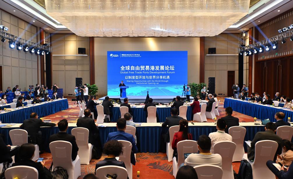2022年4月21日,博鰲亞洲論壇2022年年會(huì)舉行“全球自由貿(mào)易港發(fā)展論壇”。與會(huì)嘉賓就如何提升自由區(qū)(港)的國(guó)際競(jìng)爭(zhēng)力等話(huà)題展開(kāi)交流。新華社記者 郭程 攝