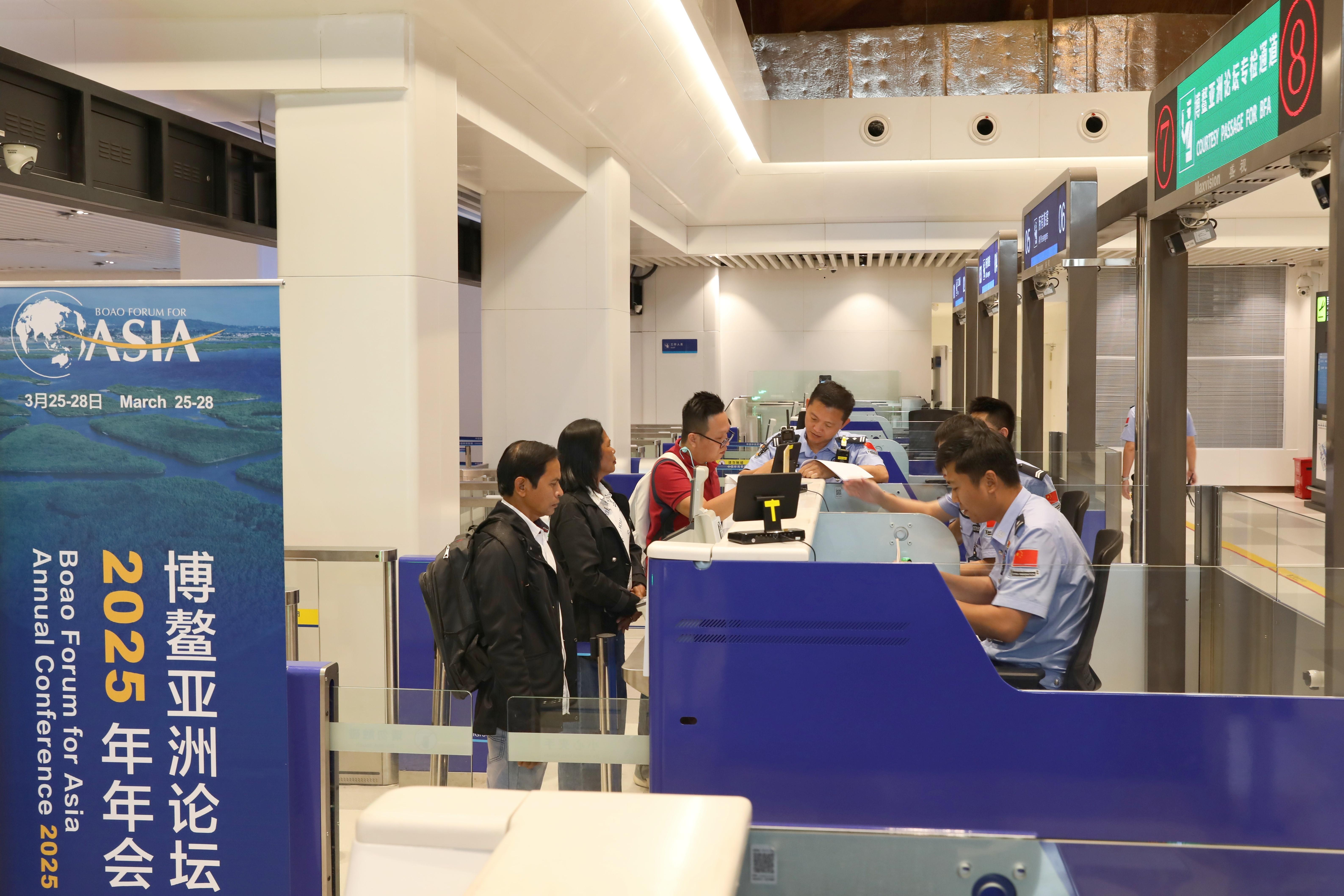 博鰲亞洲論壇2025年年會(huì)于3月25日至28日在海南博鰲舉行。自3月23日起,瓊海博鰲、??诿捞m、三亞鳳凰三大機(jī)場陸續(xù)迎來與會(huì)人員入境高峰,海南邊檢機(jī)關(guān)優(yōu)化勤務(wù)模式,主動(dòng)靠前服務(wù),努力為入境與會(huì)人員提供便捷高效的口岸通關(guān)保障。