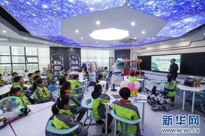 3月12日,在嘉興市實(shí)驗(yàn)小學(xué)科技城校區(qū)內(nèi),老師在指導(dǎo)學(xué)生完成“AI賦能生活”項(xiàng)目化學(xué)習(xí)。新華社記者 徐昱 攝