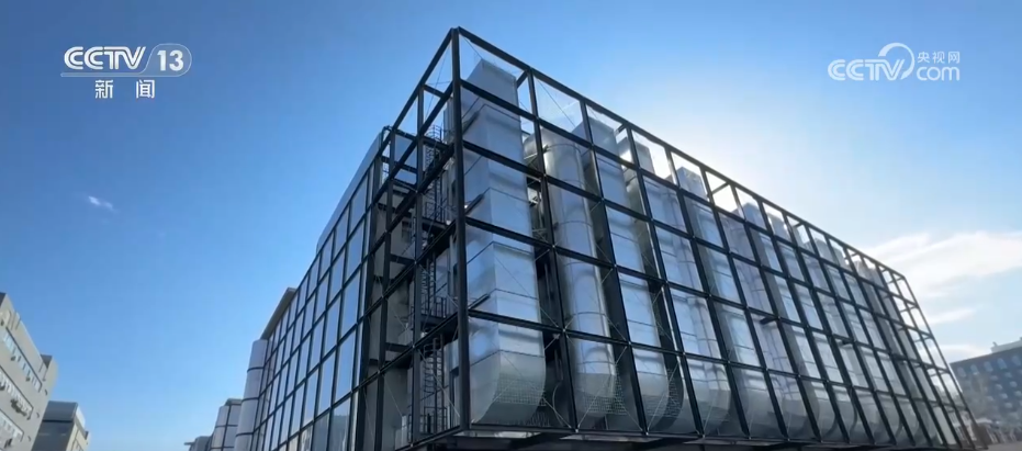 作為建在北京城區(qū)里的公共智算中心,它在建筑設計上不僅要講究美觀,更要實現(xiàn)節(jié)能和環(huán)保的效果。這個樓體立面由一排排的大鋼管組成,這些鋼結(jié)構就是間接蒸發(fā)冷機組設備,用來給智算中心的服務器集群散熱,而樓體兩側(cè)幕墻安裝的太陽能光伏板,可以為智算中心提供清潔能源。