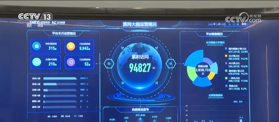 央視網(wǎng)消息:算力就像電腦的“體力”,算力越高,處理數(shù)據(jù)、運行程序的速度就越快,能同時干的“活兒”也越多。記者從日前在北京召開的全球數(shù)字經(jīng)濟標桿城市建設新聞發(fā)布會了解到,北京正加快智能算力基礎設施建設。最近,北京朝陽公共智算中心完成整體驗收,4月1日將正式投產(chǎn)。這個智算中心有什么特別之處?來看總臺記者的探訪。