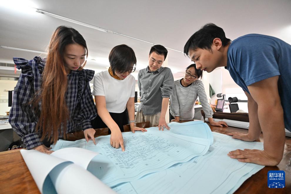 在天津陳塘科技商務(wù)區(qū)天津方標(biāo)世紀(jì)規(guī)劃建筑設(shè)計(jì)有限公司,設(shè)計(jì)人員在繪圖討論(3月26日攝)。