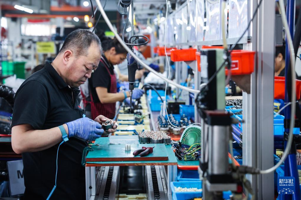3月26日,在位于嘉興南湖區(qū)余新鎮(zhèn)的浙江亞特電器股份有限公司生產(chǎn)車間,工作人員對出口的園林工具進(jìn)行組裝。