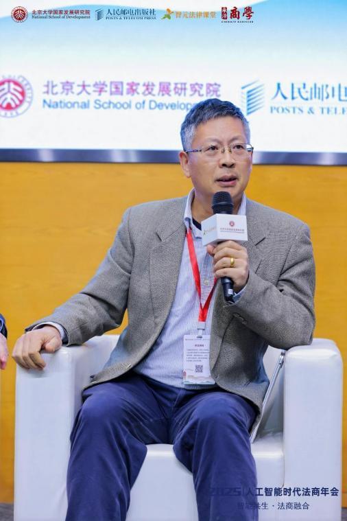 3月29日,由北京大學國家發(fā)展研究院、人民郵電出版社、智元法律課堂及承澤商學聯(lián)合主辦的“2025人工智能時代法商年會”在京舉辦。在“圓桌交流1:法治護航與企業(yè)高質(zhì)量發(fā)展”環(huán)節(jié)中,中國人民大學法學院教授、商法研究所所長劉俊海面對人工智能沖擊與新公司法落地的雙重變局,拋出“AI四階段論”與“四季法則”,直言“法治化營商環(huán)境:需法律人與企業(yè)家的共情”。