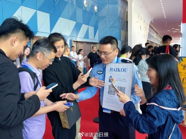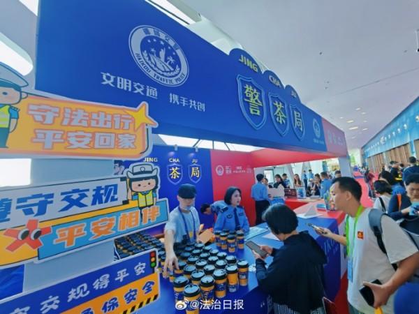 在第五屆中國國際消費品博覽會上,海南??诰降摹熬琛帧惫嫘麄髡箙^(qū)格外引人注目。在現(xiàn)場,只要參與交通安全知識問答、禁毒知識問答等普法活動,就可品嘗到印有文明交通標語的免費茶飲,收獲交警小熊、海口禁毒公仔等禮品,不少國內(nèi)外參展客商、市民游客融入其中,現(xiàn)場氛圍十分活躍。除此之外,現(xiàn)場還可觀摩仿真毒品模型、與民警面對面交流,深入了解法律知識,提高安全防范意識。創(chuàng)新宣傳,寓教于樂,這場盛會也因警方這樣的貼心守護更顯生動。