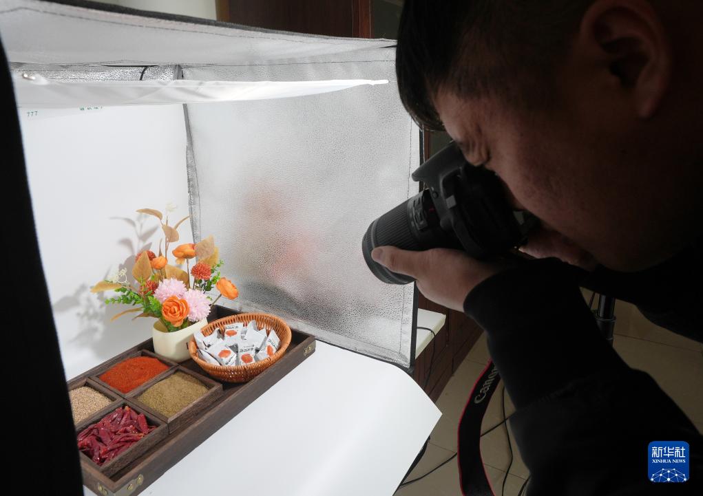 4月11日,工作人員在沈陽市陽陽食品有限公司拍攝產(chǎn)品宣傳材料。