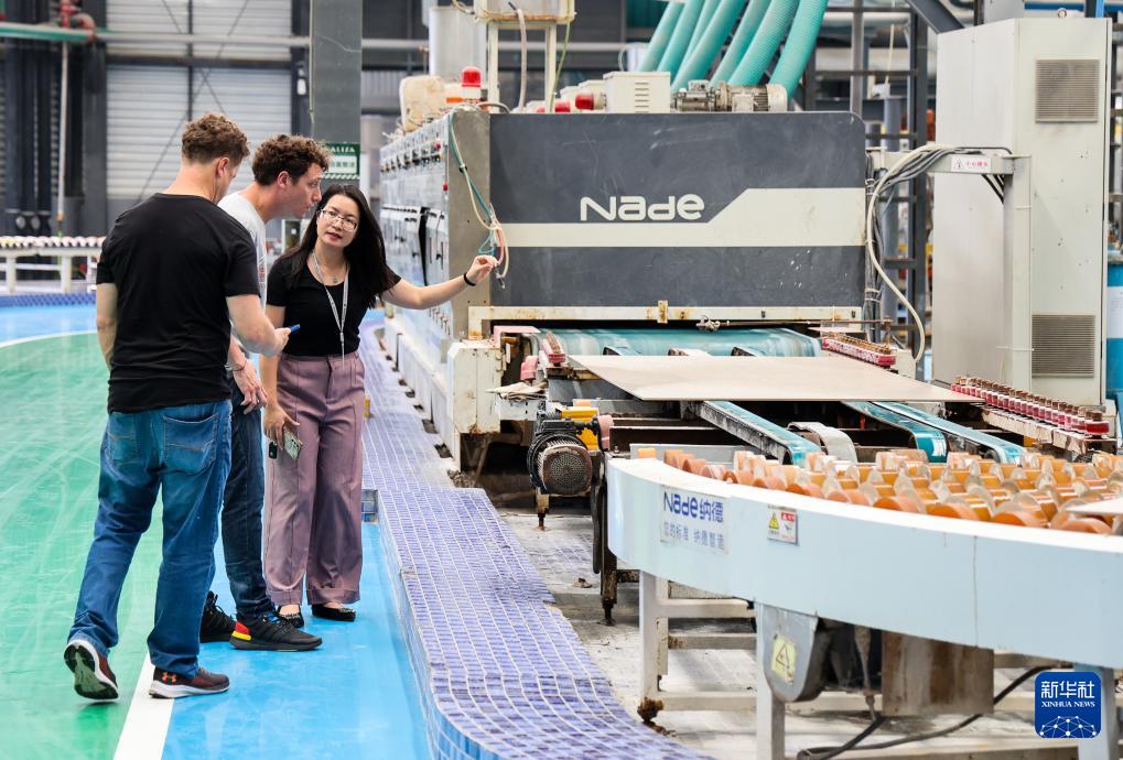 4月22日,兩名參加廣交會(huì)的阿根廷采購(gòu)商專程來到佛山參觀蒙娜麗莎大尺寸陶瓷巖板自動(dòng)生產(chǎn)線。