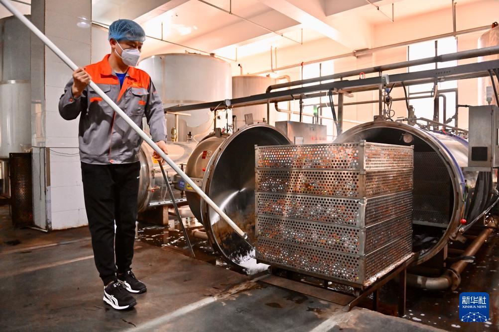 4月24日,在位于遼陽市的遼寧鑫金科技實業(yè)集團有限公司的加工廠內(nèi),工人在查看煮熟的鴨蛋。