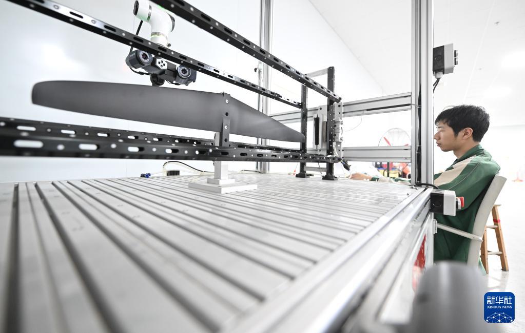 4月24日,在速力復(fù)合材料有限公司的生產(chǎn)車間內(nèi),工人在檢測(cè)生產(chǎn)的水翼產(chǎn)品。2024年,速力復(fù)材成為巴黎奧運(yùn)會(huì)新增的風(fēng)帆水翼賽事唯一指定生產(chǎn)商。