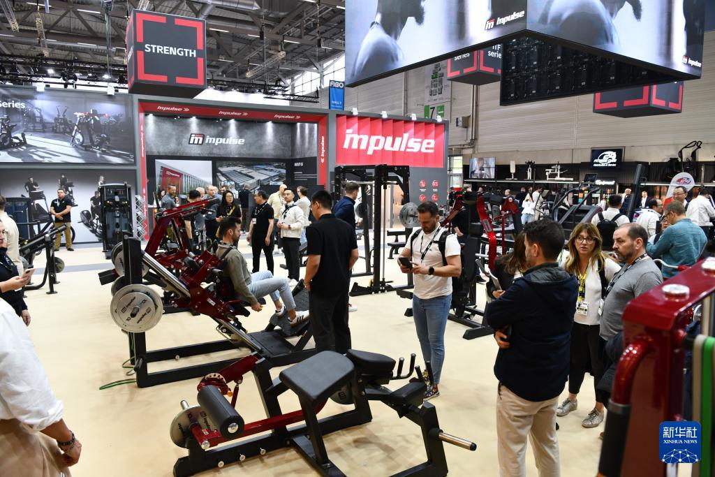 參觀者在2025年德國科隆健身健美及康體設(shè)施博覽會(huì)英派斯展位上體驗(yàn)(4月10日攝)。