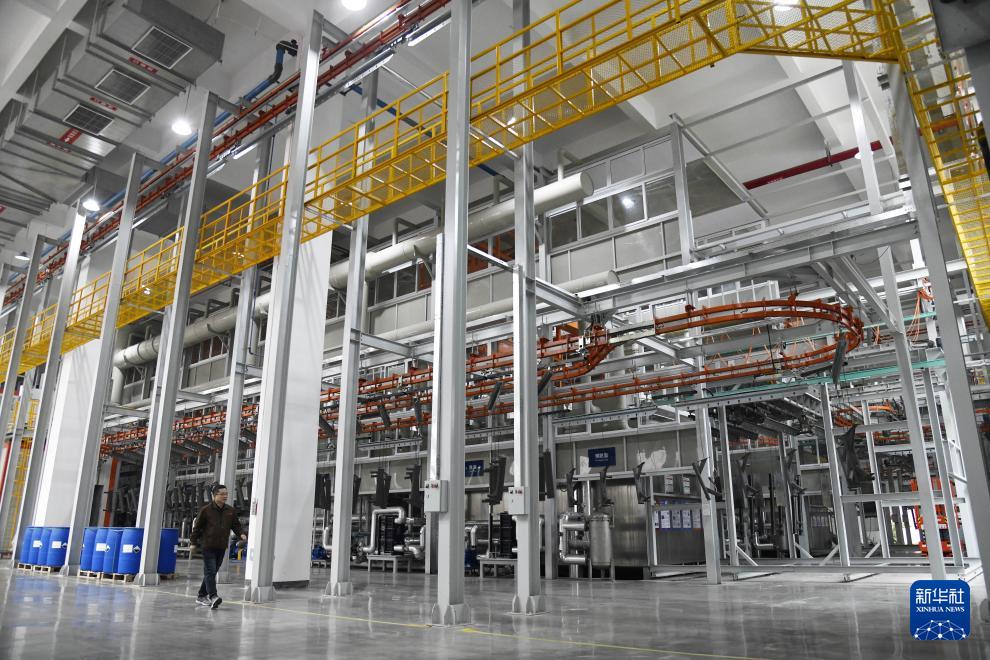 青島英派斯健康科技股份有限公司智慧工廠內的自動噴涂生產線(4月22日攝)。