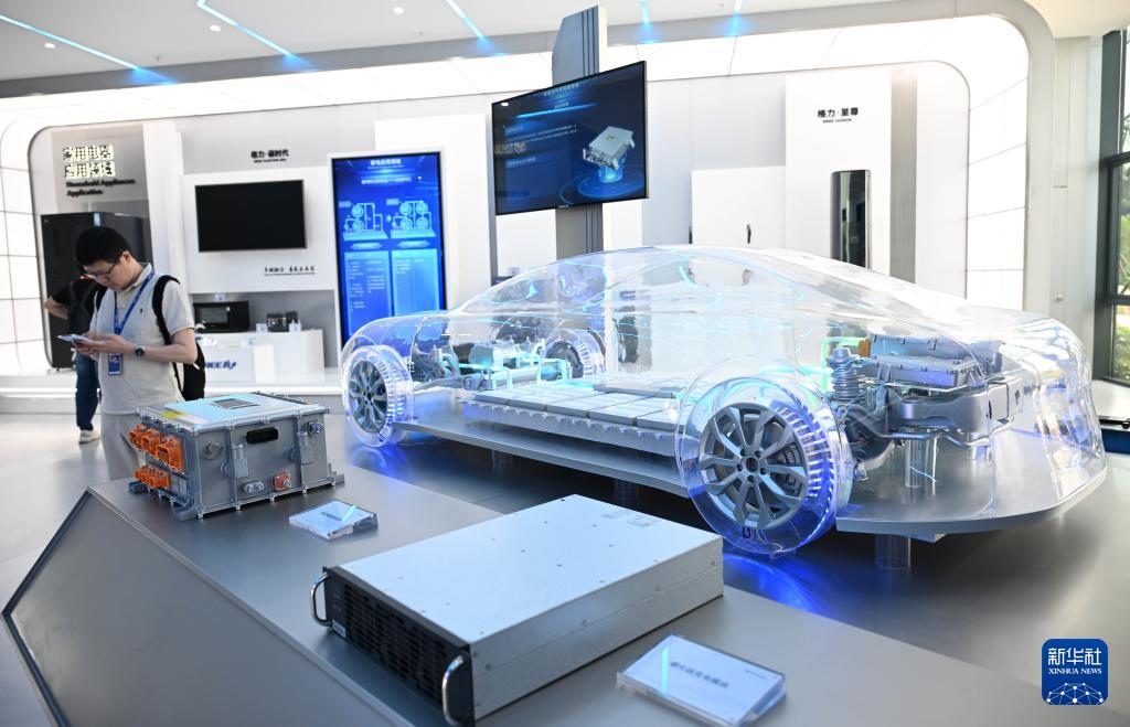 4月29日在珠海格力電子元器件有限公司拍攝的新能源汽車碳化硅充電模塊、驅(qū)動電機(jī)控制器。