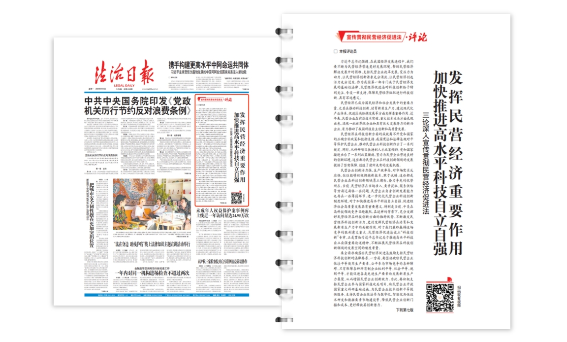 民營企業(yè)創(chuàng)新活力強(qiáng)、生產(chǎn)效率高、對市場需求反應(yīng)快,往往能夠積極擁抱新技術(shù)、敢于試錯(cuò)。這些都是民營企業(yè)在科技創(chuàng)新領(lǐng)域勇立潮頭、奮力爭先的優(yōu)勢所在。當(dāng)前,民營經(jīng)濟(jì)在市場準(zhǔn)入、要素獲取、服務(wù)供給等方面還面臨一些問題,民營企業(yè)自身創(chuàng)新發(fā)展能力也存在一些薄弱環(huán)節(jié)。進(jìn)一步優(yōu)化民營企業(yè)科技創(chuàng)新制度環(huán)境,對于加快推進(jìn)高水平科技自立自強(qiáng)、促進(jìn)經(jīng)濟(jì)社會高質(zhì)量發(fā)展具有重要意義。特別是當(dāng)前,中美在高科技領(lǐng)域競爭日趨激烈,在這樣的背景下,充分發(fā)揮好民營經(jīng)濟(jì)在科技創(chuàng)新方面的獨(dú)特優(yōu)勢,不斷激發(fā)民營經(jīng)濟(jì)科技創(chuàng)新活力,更好發(fā)揮民營經(jīng)濟(jì)在培育和發(fā)展新質(zhì)生產(chǎn)力中的關(guān)鍵作用,對于我們最終贏得這場競爭的勝利意義重大。民營經(jīng)濟(jì)促進(jìn)法設(shè)立“科技創(chuàng)新”專章,正是貫徹習(xí)近平總書記關(guān)于推進(jìn)高水平科技自立自強(qiáng)重要論述精神、不斷拓展民營經(jīng)濟(jì)在科技創(chuàng)新領(lǐng)域的發(fā)展空間的制度考量。