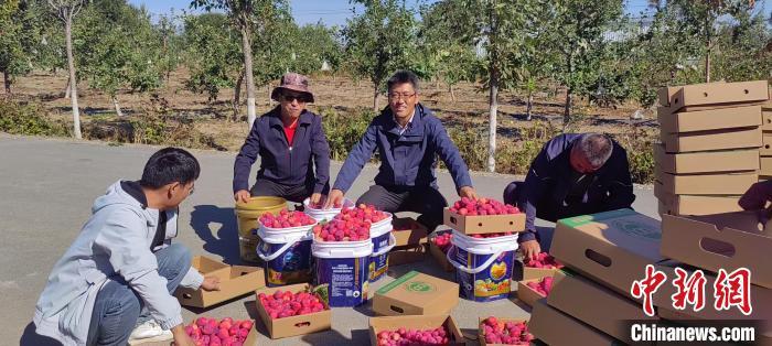 王志剛參與遼塔農(nóng)業(yè)科技示范園果樹(shù)品種采收、測(cè)產(chǎn)。 劉國(guó)宇 攝